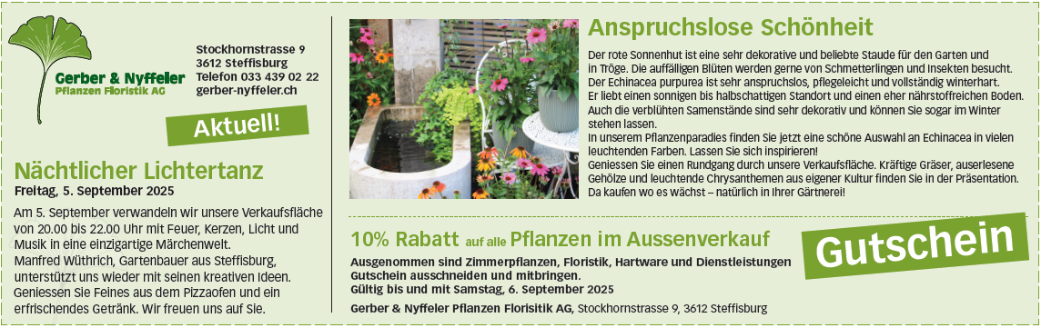 Aktuelles August 2025: 10% Rabatt auf alle Pflanzen im Aussenverkauf
