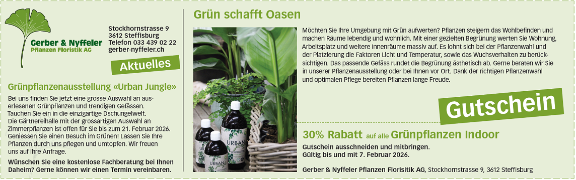 Aktuelles Januar 2026: 30% Rabatt auf alle Grünpflanzen Indoor
