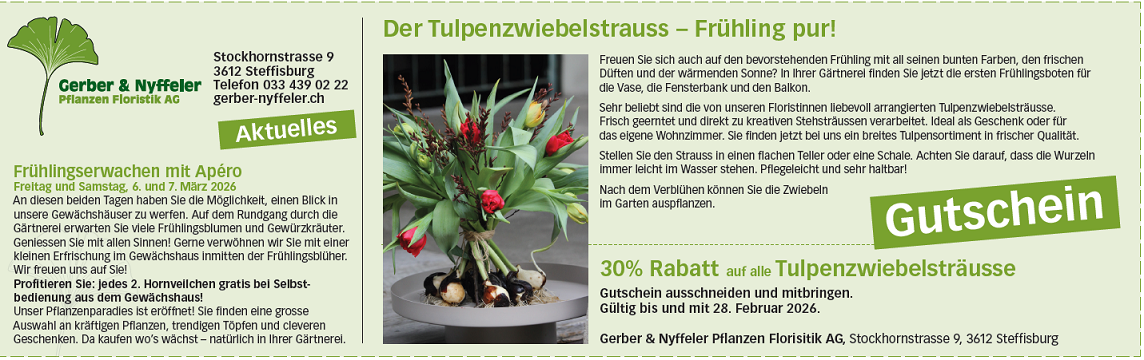 Aktuelles Februar 2026: 30% Rabatt auf alle Tulpenzwiebelsträusse